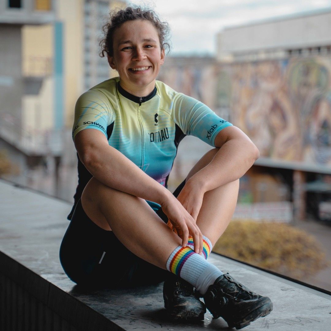 Wie viele Bikes sie hat? Klassisch: n+1 – Mathe, die jeder Radmensch versteht. Am liebsten crasht Cori über sogenannte "Chris-Strecken" – das sind die, die Komoot als "unfahrbar" einstuft, aber mit der richtigen Crew einfach mega sind. Ihre längste Tour? 245 km. Und bei 2.360 Höhenmetern zuckt sie nur kurz mit der Schulter – dann denkt sie an ein eiskaltes Radler, redet sich ein, dass Steigung irgendwie geil ist, und tritt einfach weiter. #SelbstmotivationDeluxe