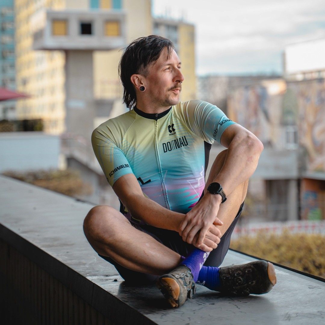 besser bekannt als Turbo Chris. So richtig aufs Rad kam er in den wilden Neunzigern – und wer ihn kennt, weiß: Die Frage nach dem einen Lieblingsfahrrad ist bei ihm ungefähr so sinnvoll wie zu fragen, welches Kind man am liebsten hat. Es ist jedenfalls nicht bei einem Rad geblieben. Okay, sein Gravelbike hat schon ein kleines Steinchen im Herzen – denn meistens brettert er damit über Waldautobahnen und krumme Trampelpfade.